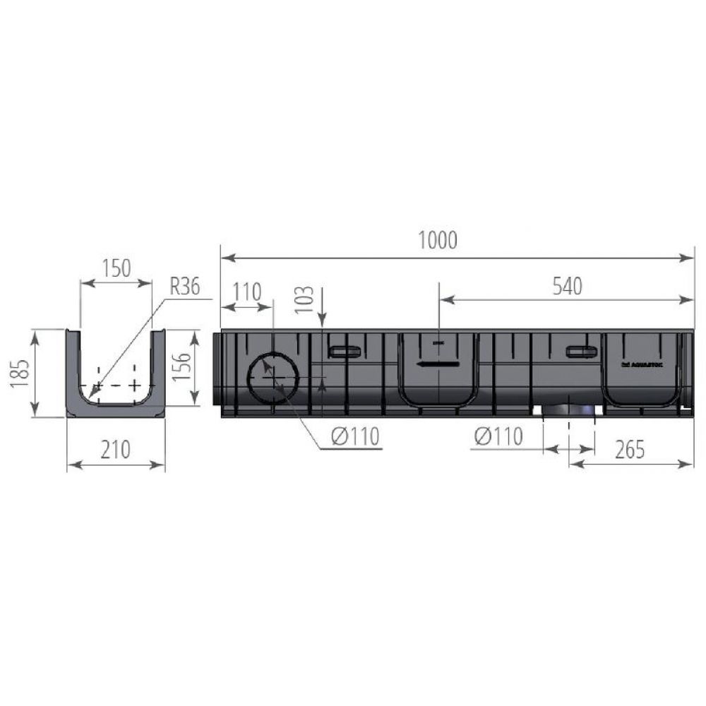 Лоток водоотводный пластиковый ЛВП Норма 150 Н185 от производителя Аквасток по цене 980 р